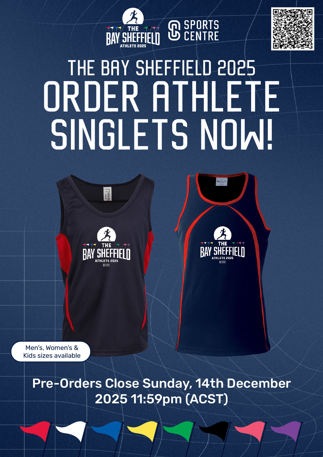 ENTRANTS CAN ORDER THEIR OWN BAY SHEFFIELD ATHLETE SINGLET ONLINE VIA SPORTSCENTRE
